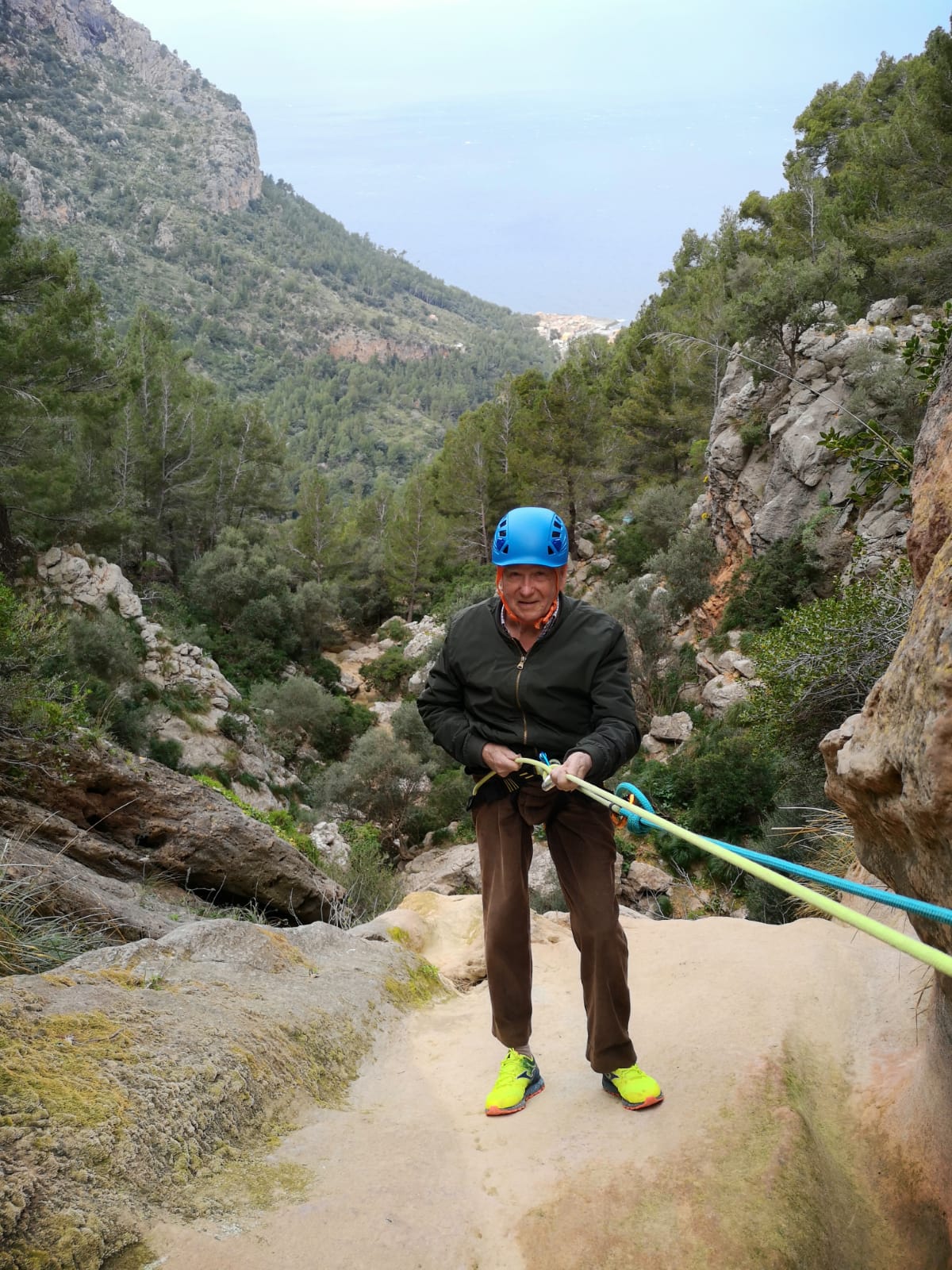 Tres locos, tres aventureros, tres inconscientes o tres personas que confían en si mismas y en su capacidad de superación. Con casi 80 años y 7 stens, él sabía lo que podía y no podía hacer, por eso evitaron subir cuestas y fue principalmente bajada. ¡Y que bajada! El barranco Es Lli, 13 rapeles, 4.5 horas. Superó el reto y ¡es feliz!